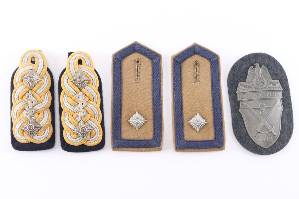 Includes: (1) set of Kriegsmarine officer's shoulder boards. (1) set of Luftwaffe shoulder boards. (1) Demjansk Shield campaign award.