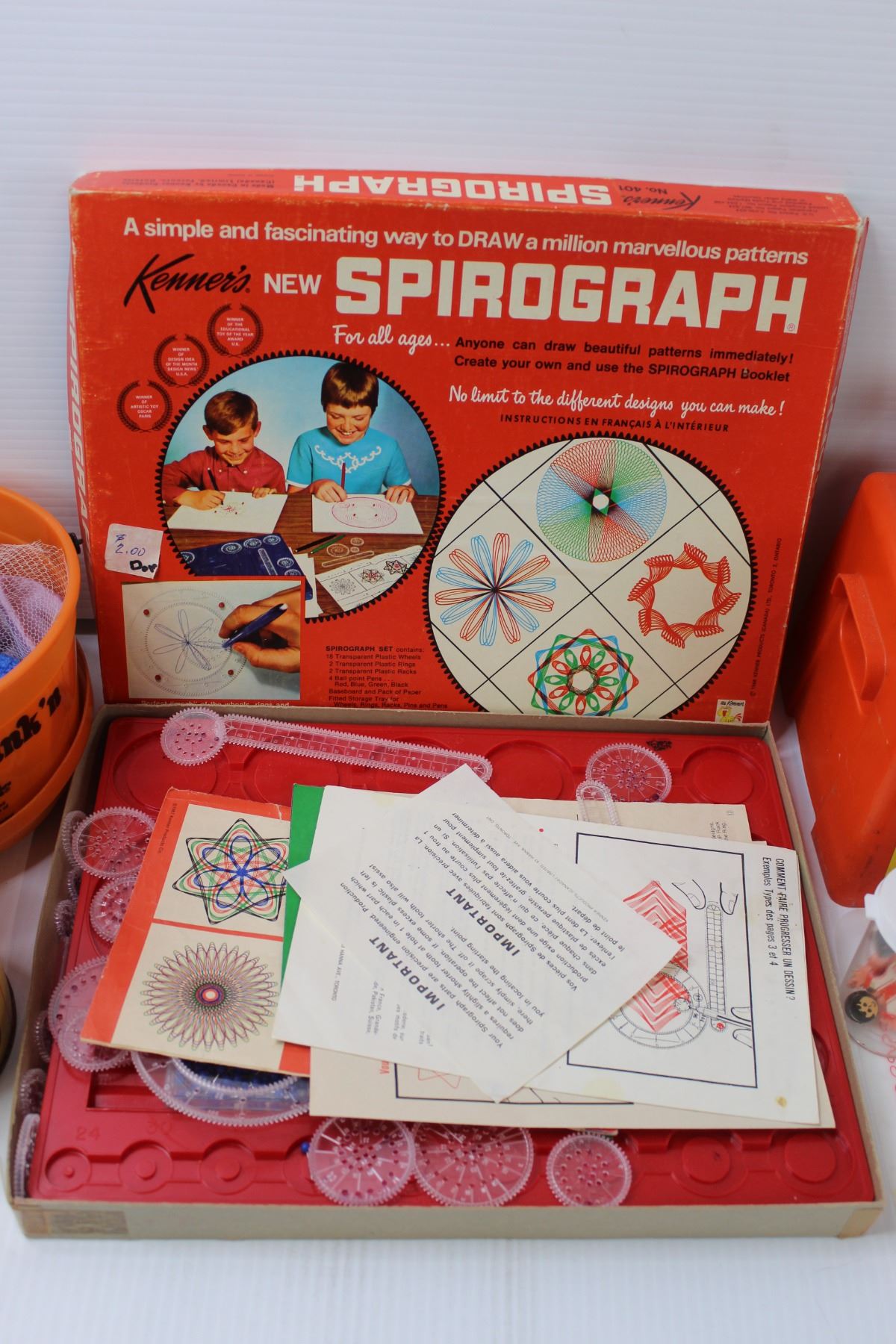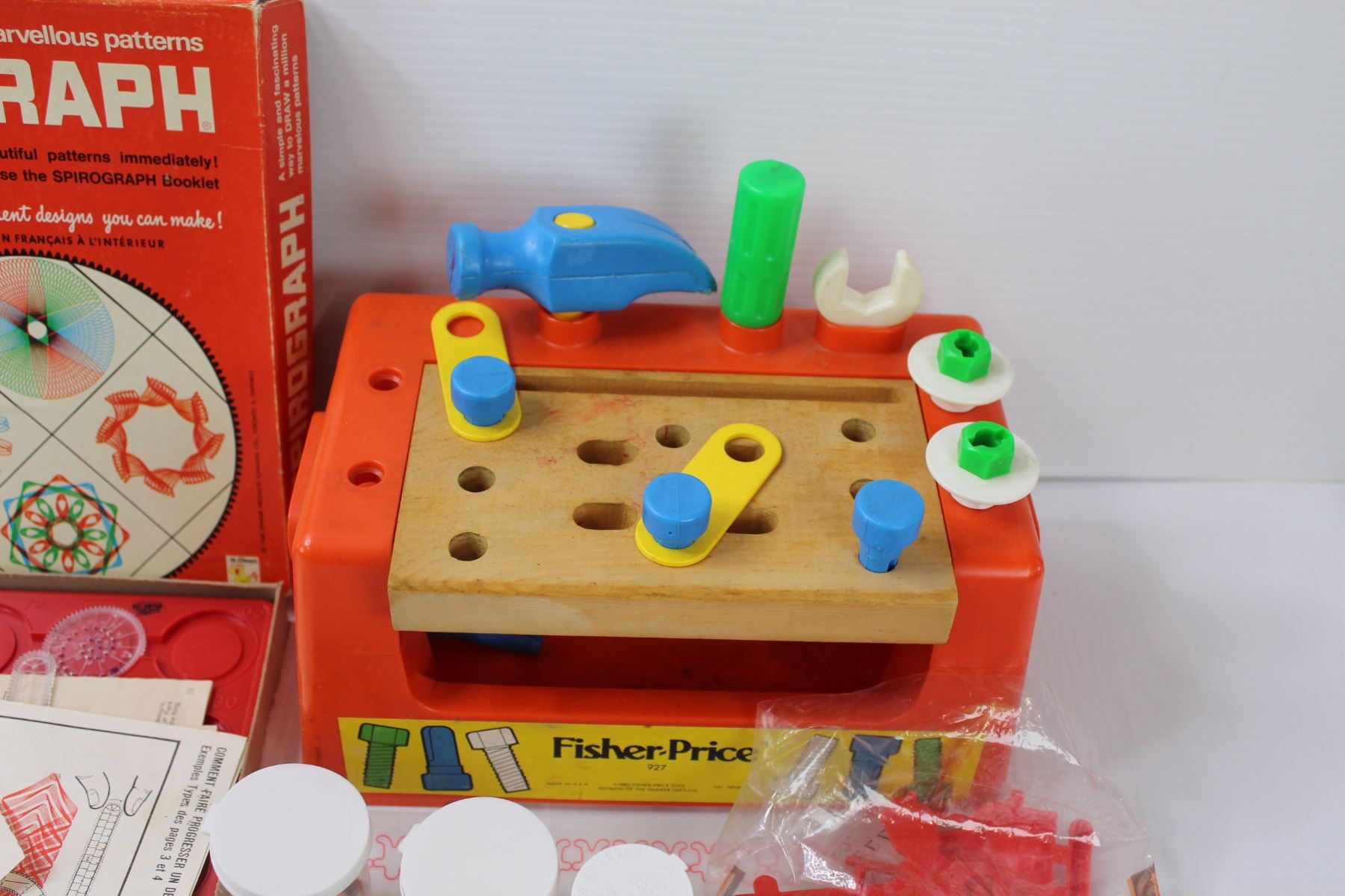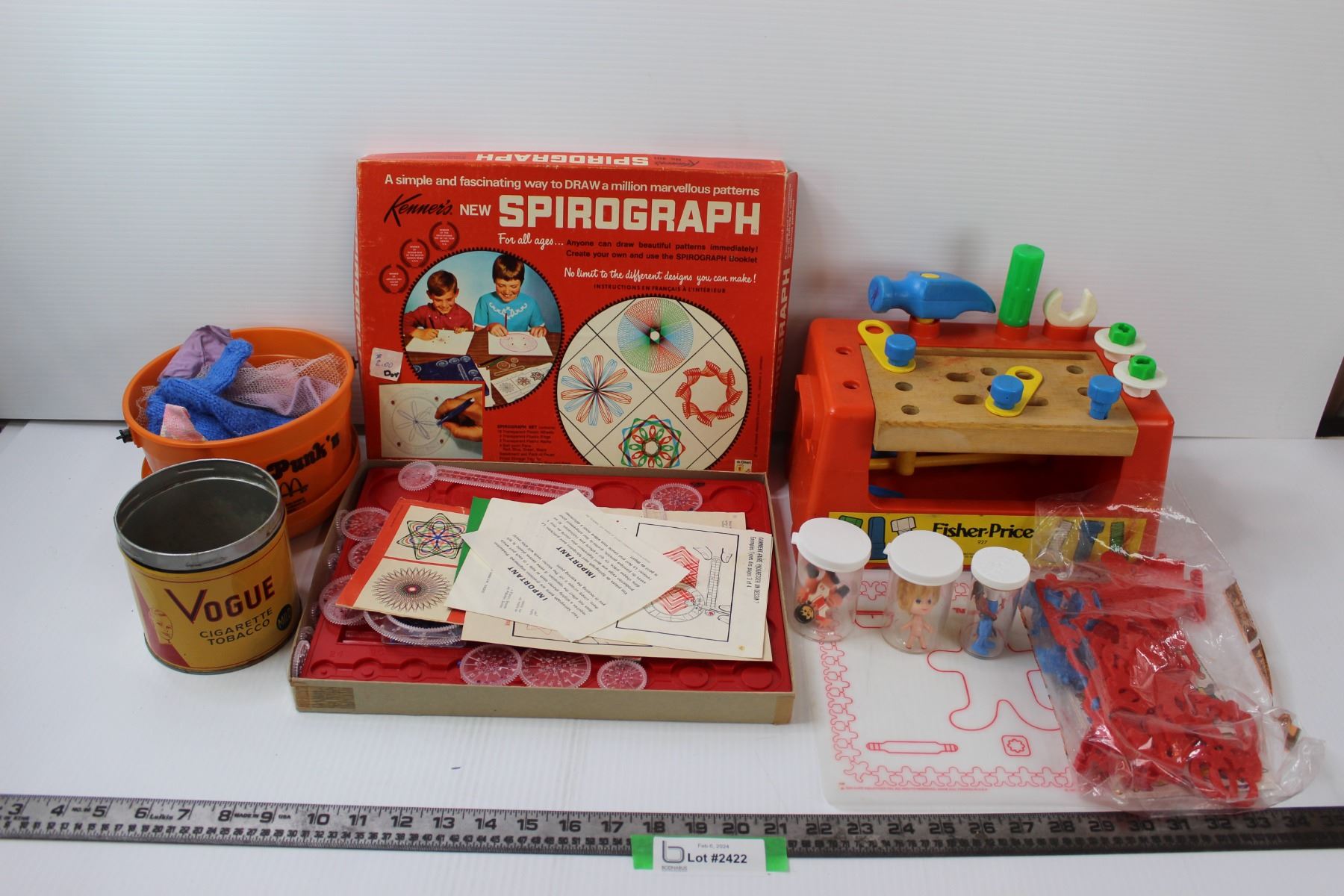 Lot of Retro Childrens Toys: Spirograph, Fisher Price Work Bench, McDonalds Tracing, Misc.