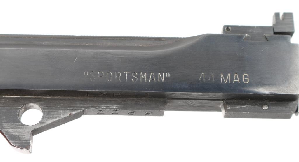 Three total. These are rare to find. All 3 are numbered "2289". 1) 8 1/4" slab sided blue barrel chambered in .44 Mag. raised rib with large front sight blade, micro adjustable rear sight. Bore would be excellent/bright, except for a small area of light pitting in the lower bore. 2) 12" slab sided , blue barrel chambered in .357 Mag. , raised ventilated rib with large front sight blade, micro adjustable rear sight. Rib drilled/tapped. Bore is excellent/bright, needs cleaning. Has NRA National Silhouette Championships sticker attached. 3) 14" round/slab sided barrel chambered in .30-.30 Win. Dovetailed front sight blade, micro adjustable rear sight. Bushnell Sportsview scope mounted on high base. Power info worn off. Clear optics. Bore appears very good with some dark areas above the chamber, should improve with cleaning.
