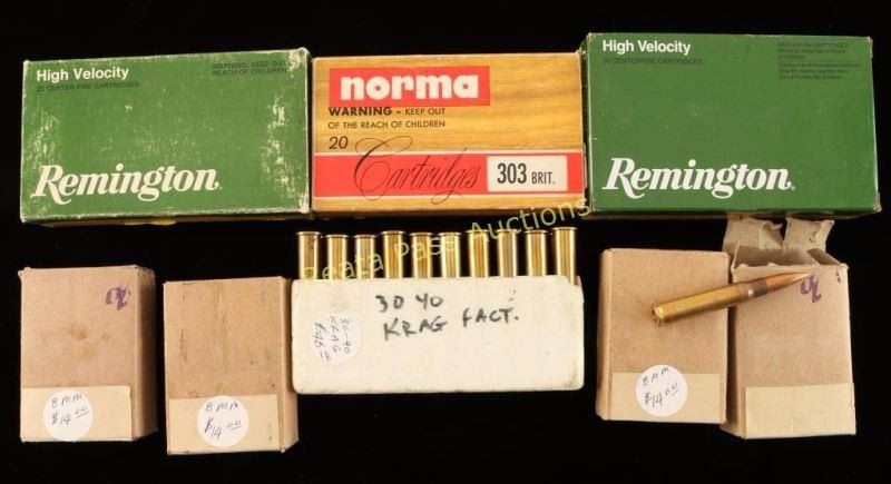 Includes 4 boxes of 8mm 2 boxes of 30-40 Krag, 2 boxes of 303 British.