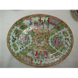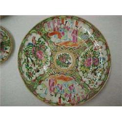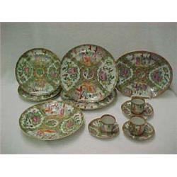 Rose medallion lot including oval platter 8 1/2" x 11"(rim flake), two 10" plates, 9 3/4" plate, three 8" plates, three saucers, and three demitasse cups, all C.1900