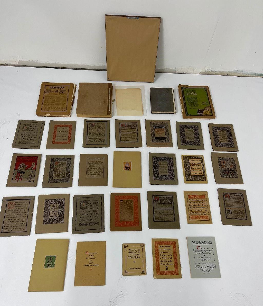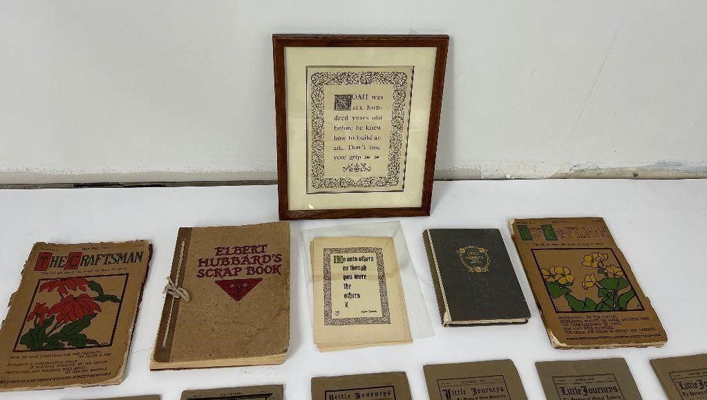 Very large lot of Roycroft and Roycrofters Material. Including a framed page, and Elbert Hubbard's Scrap Book.