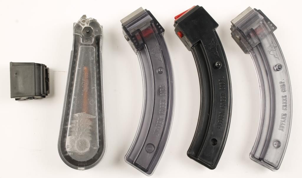 Includes (3) Butler Creek 25 round magazines, (1) unknown 50 round magazine and (1) factory 10 round magazine.