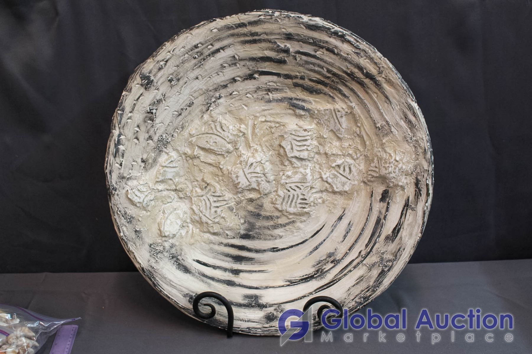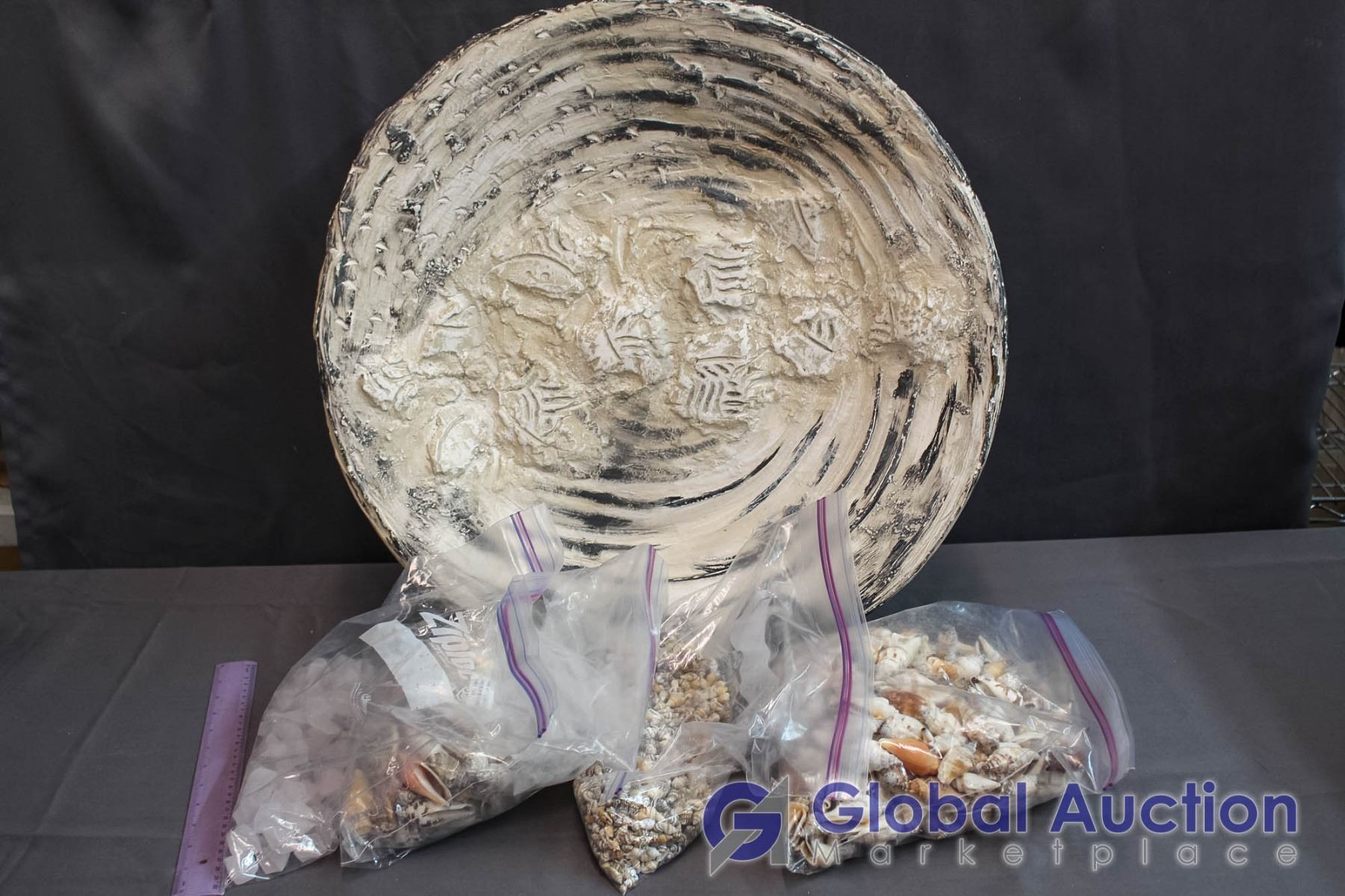 Lot of Seashells, Clear Decorative Rock & Decorative Plate w/ Stand