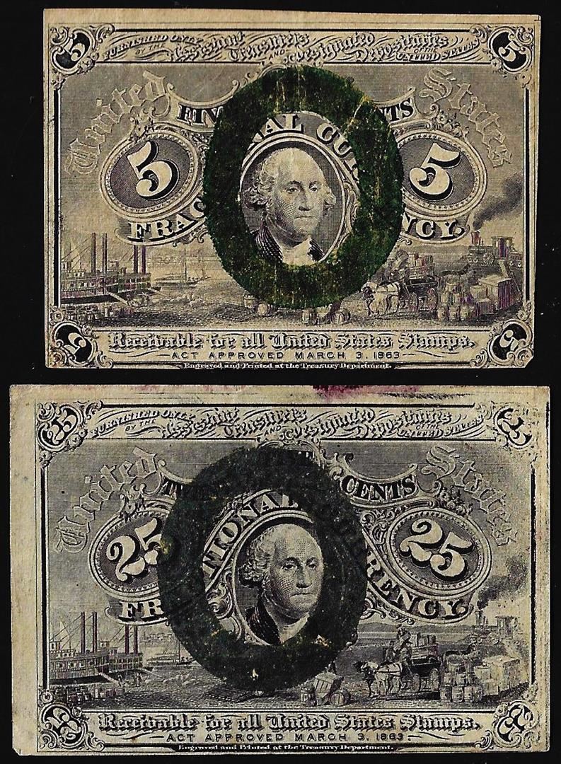 One Lot of Second Issue Five Cents and Twenty-Five Cents Fractional Currency Notes.