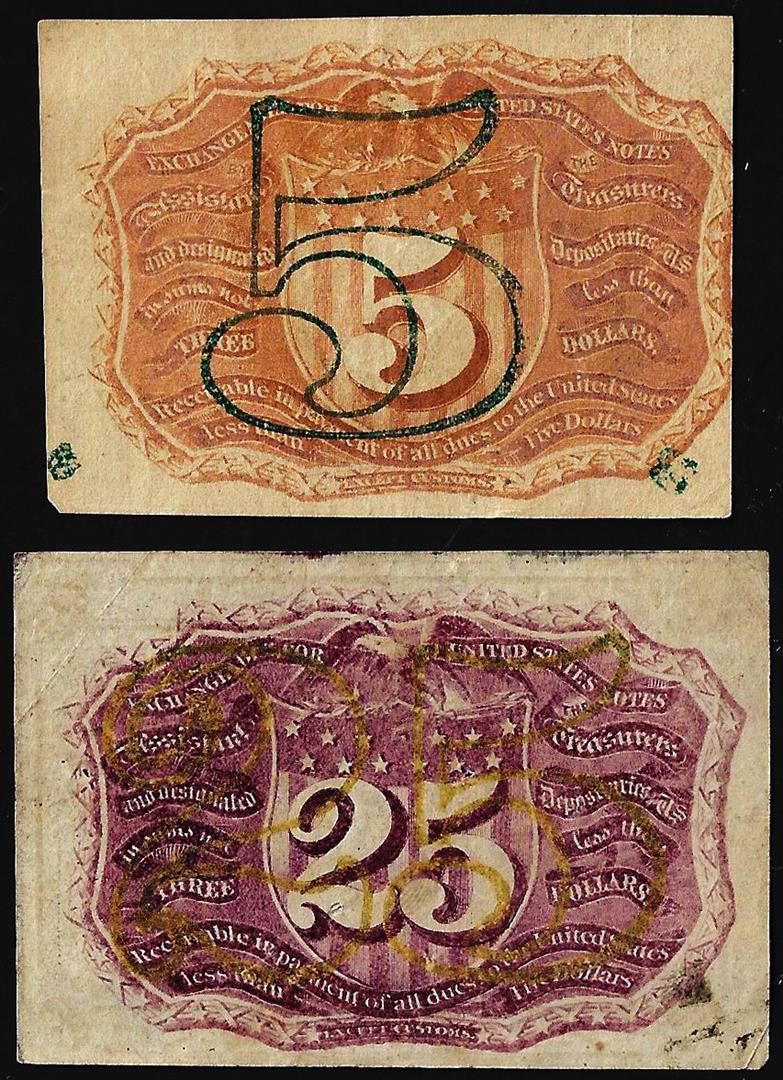 Lot of Second Issue Five Cents and Twenty-Five Cents Fractional Currency Notes