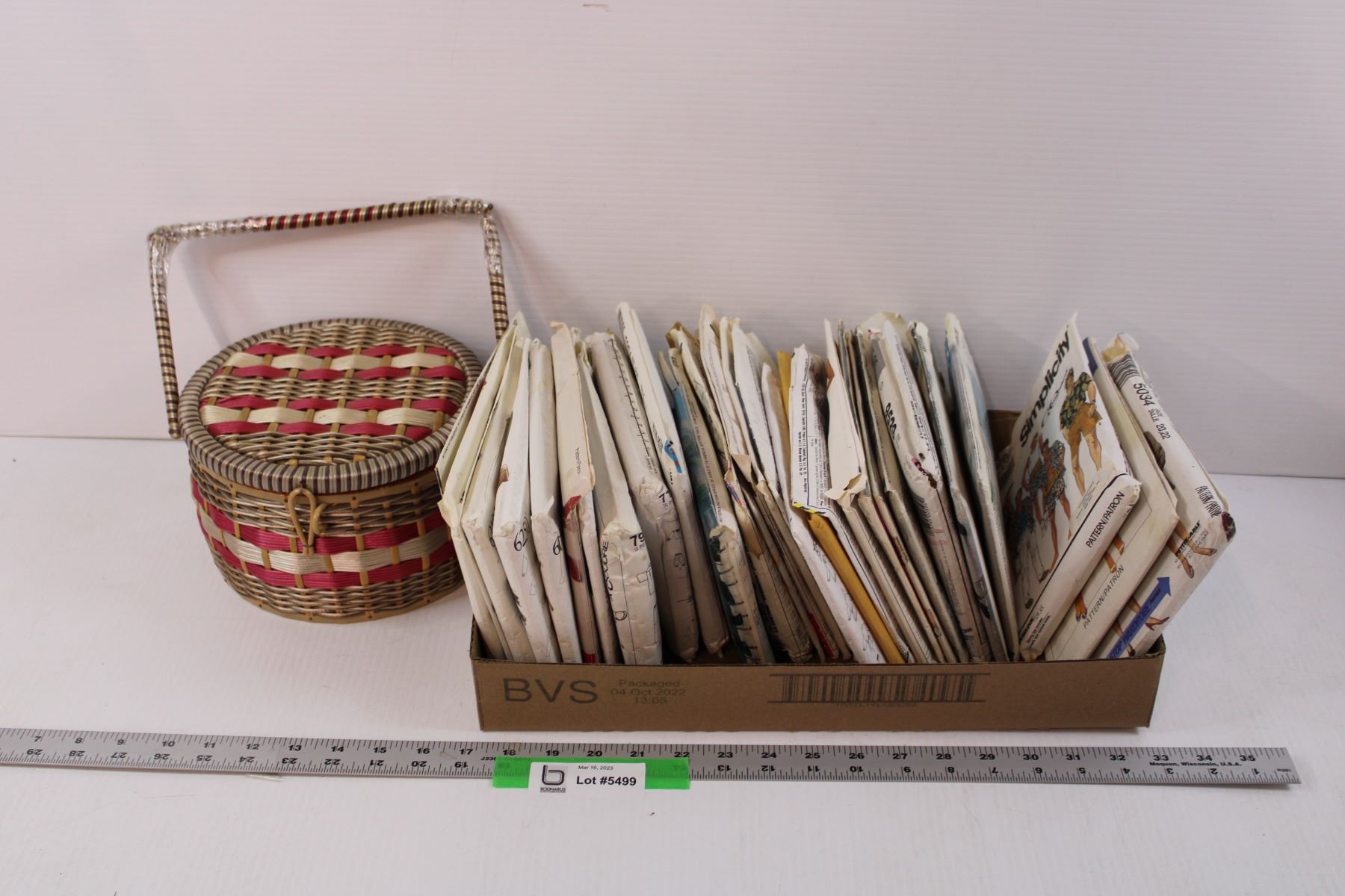 Lot of Sewing Basket and Misc Accessories, 25+ Sewing Patterns
