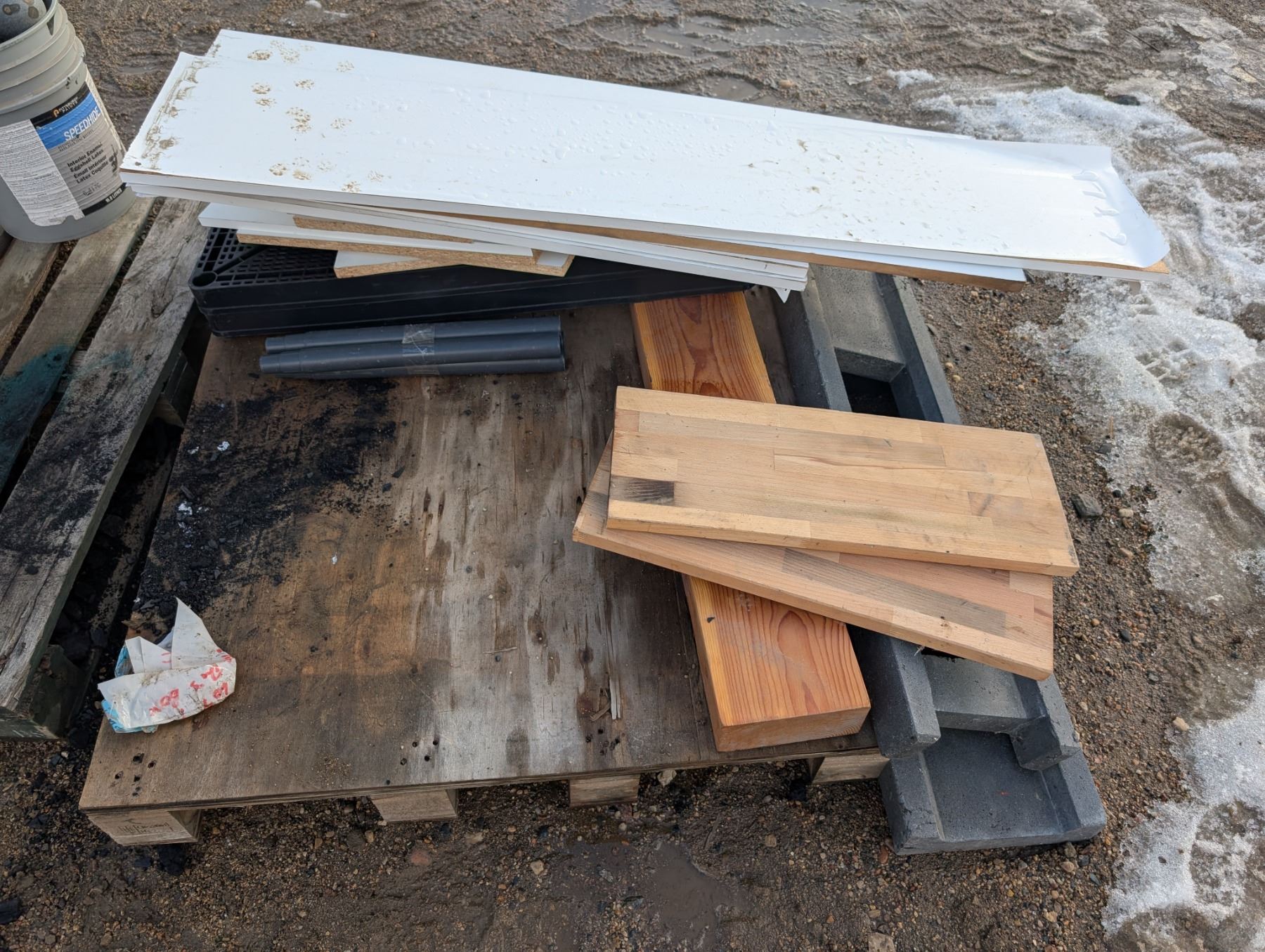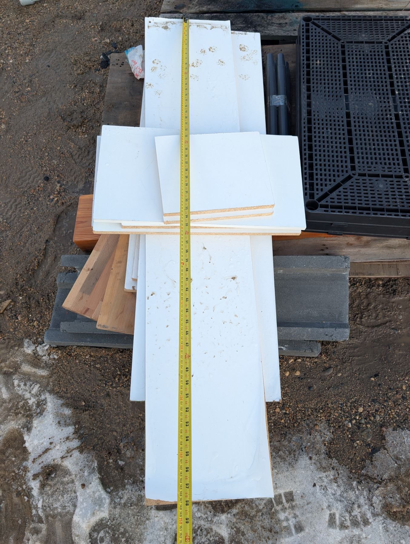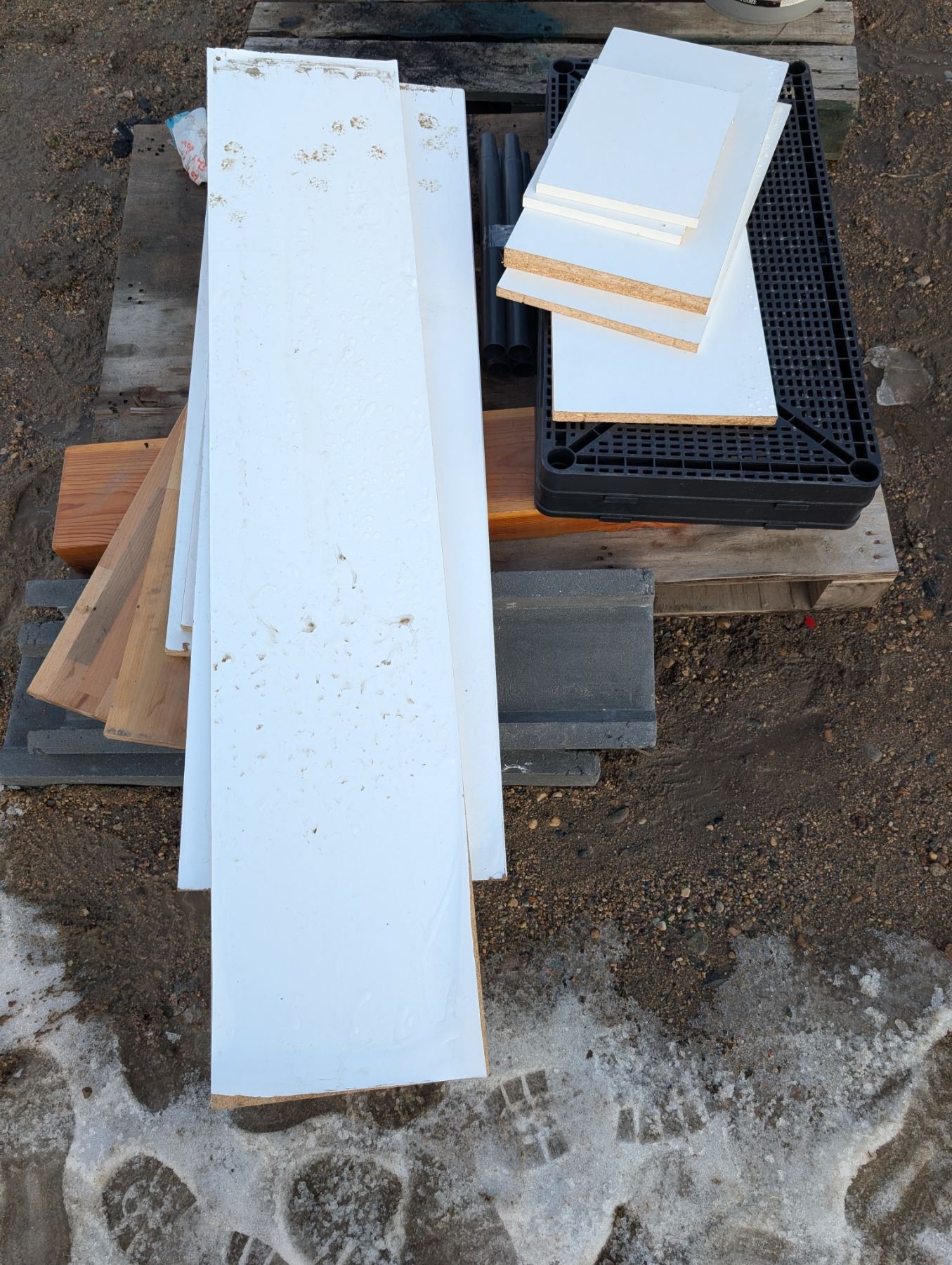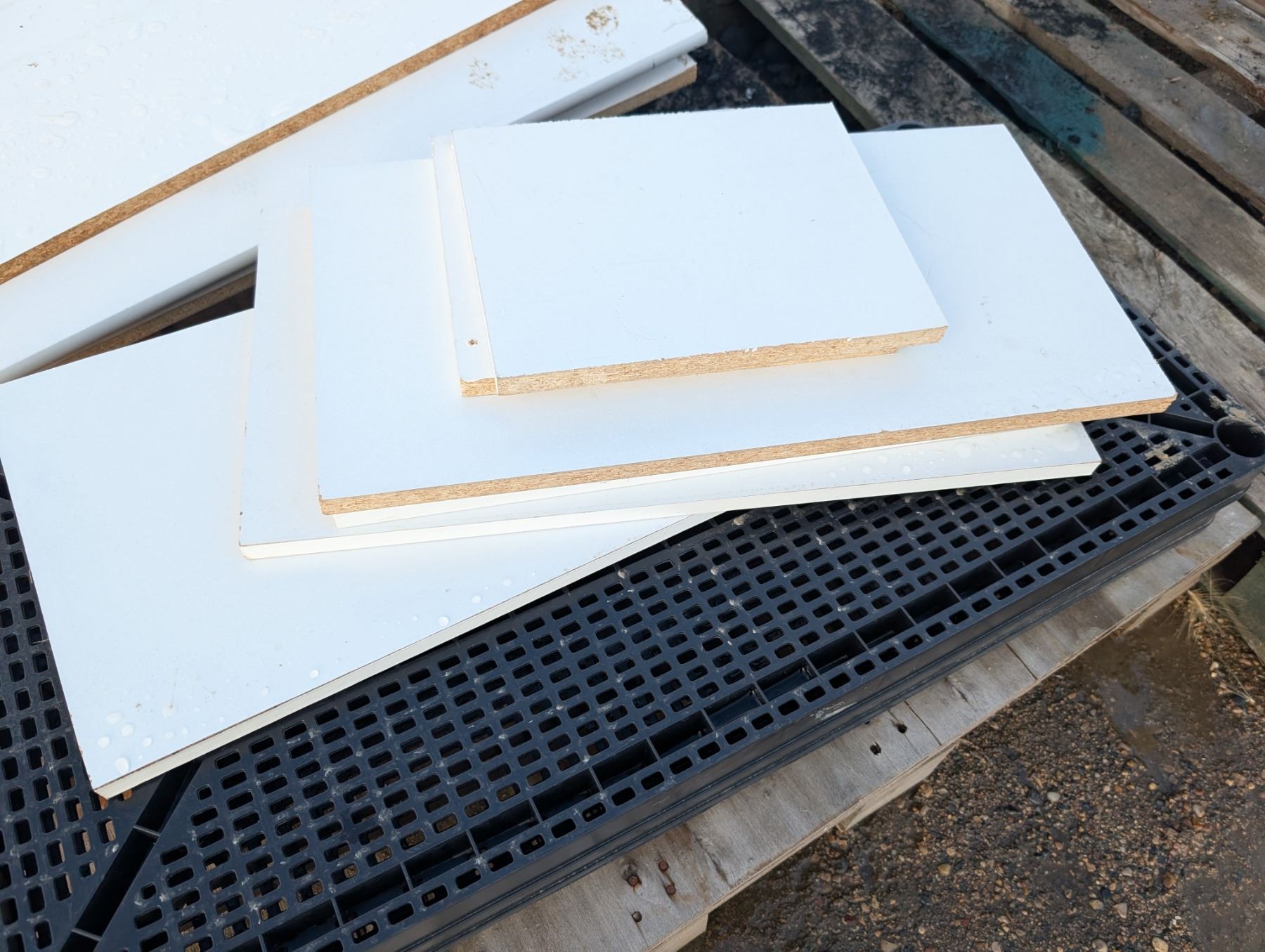 Lot of Shelving Boards (Wood, Plastic, and etc. As Shown) (Measurements/Sizes Vary)
