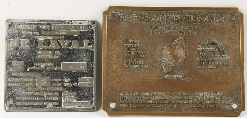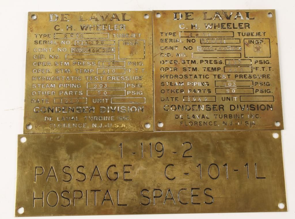 (1) Brass that has just numbers. (1) DE Laval Condenser Division. (1) DE Laval Turbine for Generator. (1) Hospital Spaces. (1)DIV-Passage Showing Armory, Brig, etc... (1) The Babcock & Wilcox Co. Offices