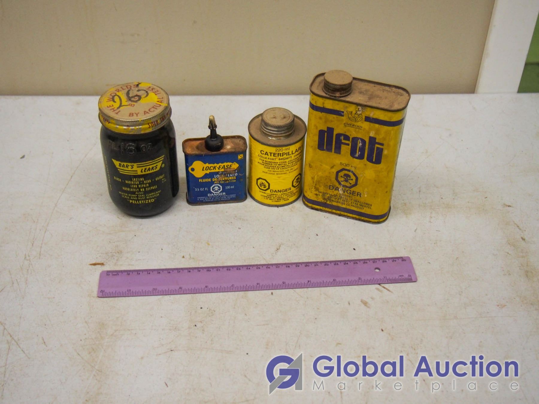 Lot of Shop Tins and Glass with Contents (3 Tins, 1 Glass)
