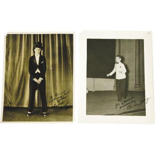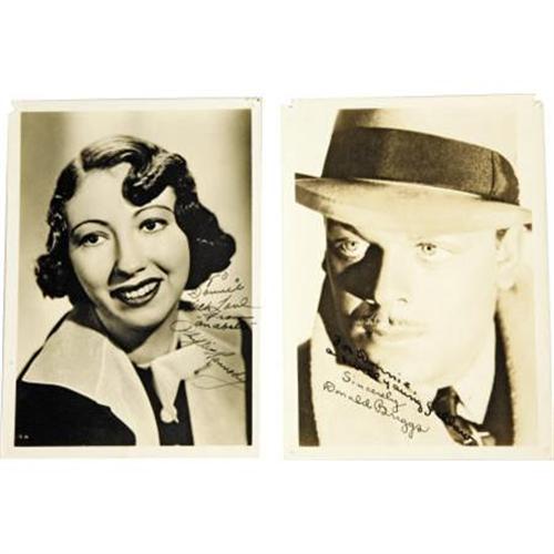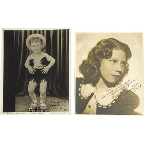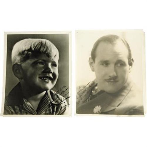 <B>Lot of Signed Photos to Donnie Dunagan.</B></I> In his brief show business career, Donnie Dunagan crossed paths with various actors, some established and some aspiring. This lot includes signed photos from Maurice Kosloff (Donnie's drama coach), Phyllis Kennedy (who worked with Donnie in <I>Mother Carey's Chickens</B></I>), Robert Beamish (child actor), Billy King (dancer), Anita Fortuna (dancer), Velma Lee Hall (child performer), Alma Jean Lang (actress), Donald Briggs (actor who worked with Donnie in <I>The Forgotten Woman</B></I>), and Monte Magee (a radio personality from Donnie's hometown of San Antonio). Many have charming inscriptions, especially Kosloff's: "To Donnie Dunagan 'Things worth while live' 'you should live forever' Maurice Kosloff 3-31-39." Most of the shots have pin holes in the borders. In overall Very Fine condition. <I>From the Donnie Dunagan Archive</B></I>.<BR><BR><b>Shipping:</b> Flat Material, Small (<a target="_blank" href="http://www.heritageauctions.com/common/shipping.php">view shipping information</a>)