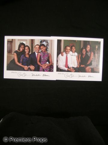 For collectors of political history, this is a lot of (2) autographed color photos signed by President Barack Obama and Michelle Obama. The two photos feature the Obama family sitting together and are signed 'Barack Obama' and 'Michelle Obama,' respectively. (measures approx. 8" x 10" ea.)