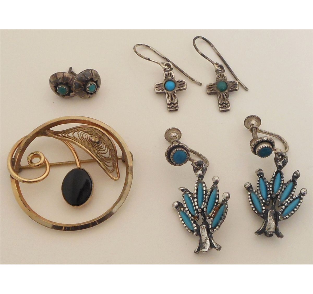 Lot of 3 Pairs of Sterling Silver and Turquoise Earrings. One Winard GF Pin. All are in Good Condition. (See Pictures)