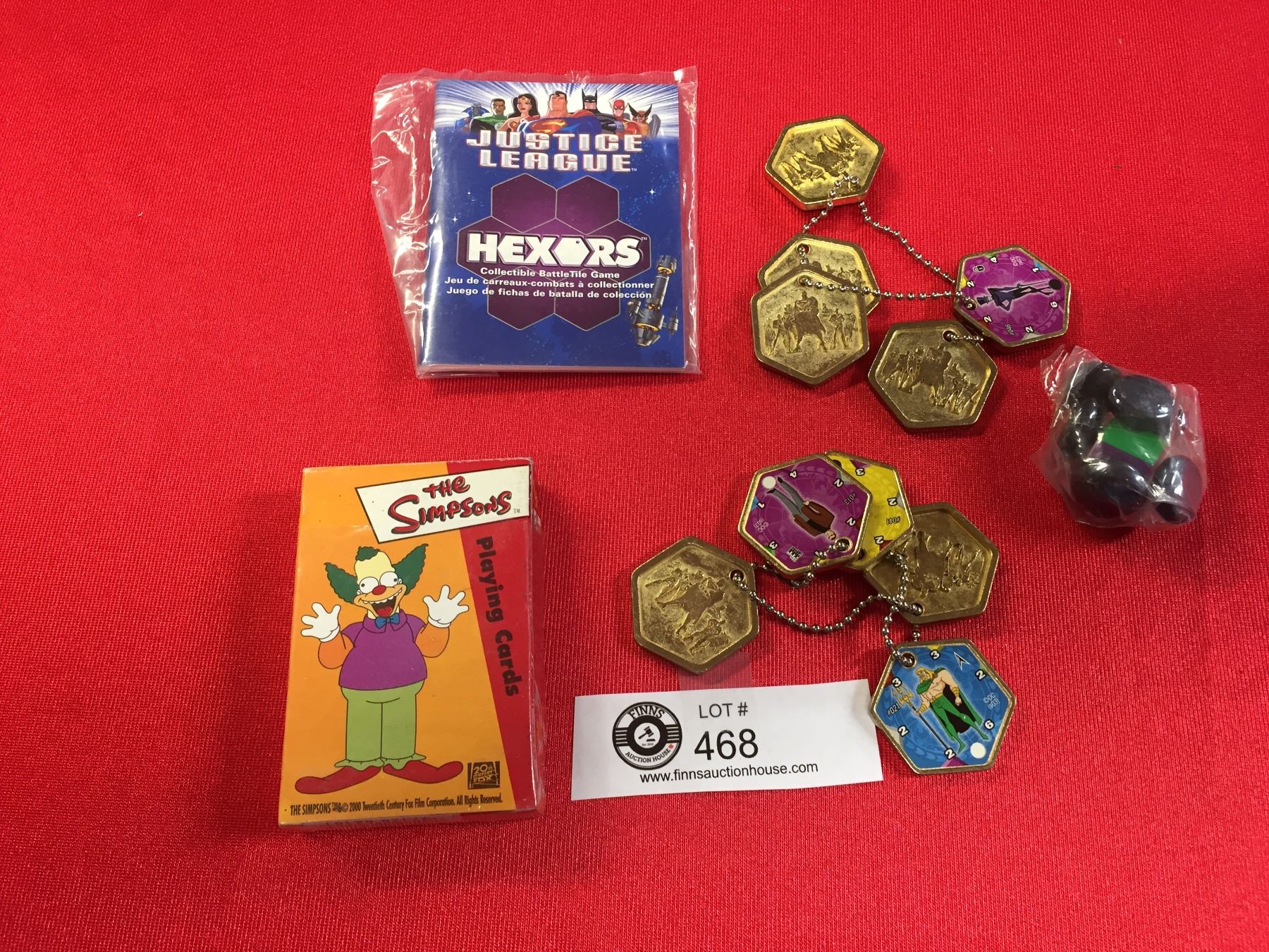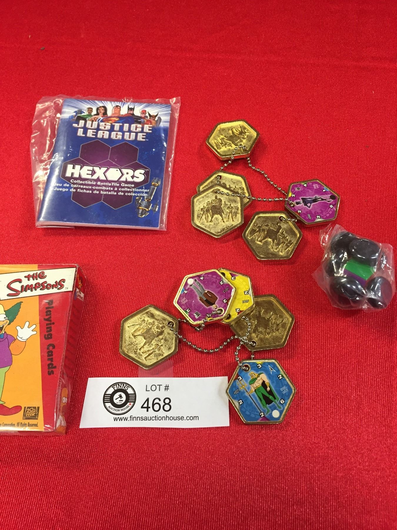 Lot of Simpson's Playing Cards and Justice League Hexors