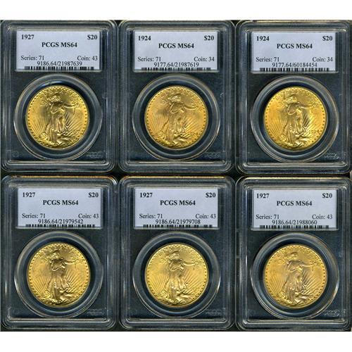 Includes: Two 1924 PCGS MS64. Two coins possess a touch of attractive toning; Four 1927 PCGS MS64. Just a notch below gem quality. Lot of 6 coins.