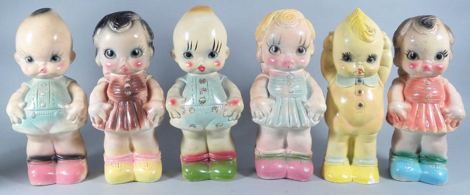 Lot of Six "Baby" Carnival Chalk Figures. Excellent condition. Each measures 12 inches tall.