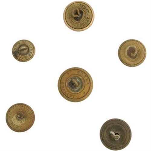 <B>Lot of Six United States Army Buttons,</B></I> including: two Civil War era general service buttons, 19mm; three Civil War era infantry buttons, 23mm, 21mm, and 16mm; and, one Indian War general service button, 21mm. Various makers, most fine. <B></B></I><BR><BR><b>Shipping:</b> Miscellaneous Collectibles, Smal (<a target="_blank" href="http://www.heritageauctions.com/common/shipping.php">view shipping information</a>)