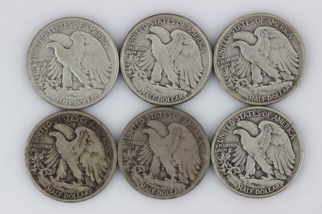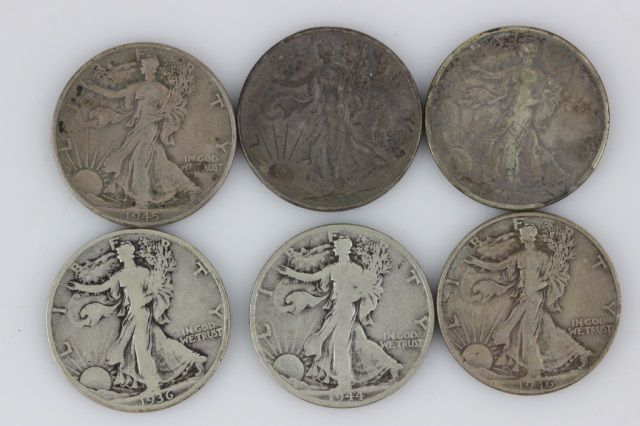 This wonderful lot is a collection of 6 Walking Liberty Half Dollars. These coins are all in conditions from VG to VF with dark toning. These 90% silver coins are all common dates but would make a wonderful addition to any coin or silver collection.