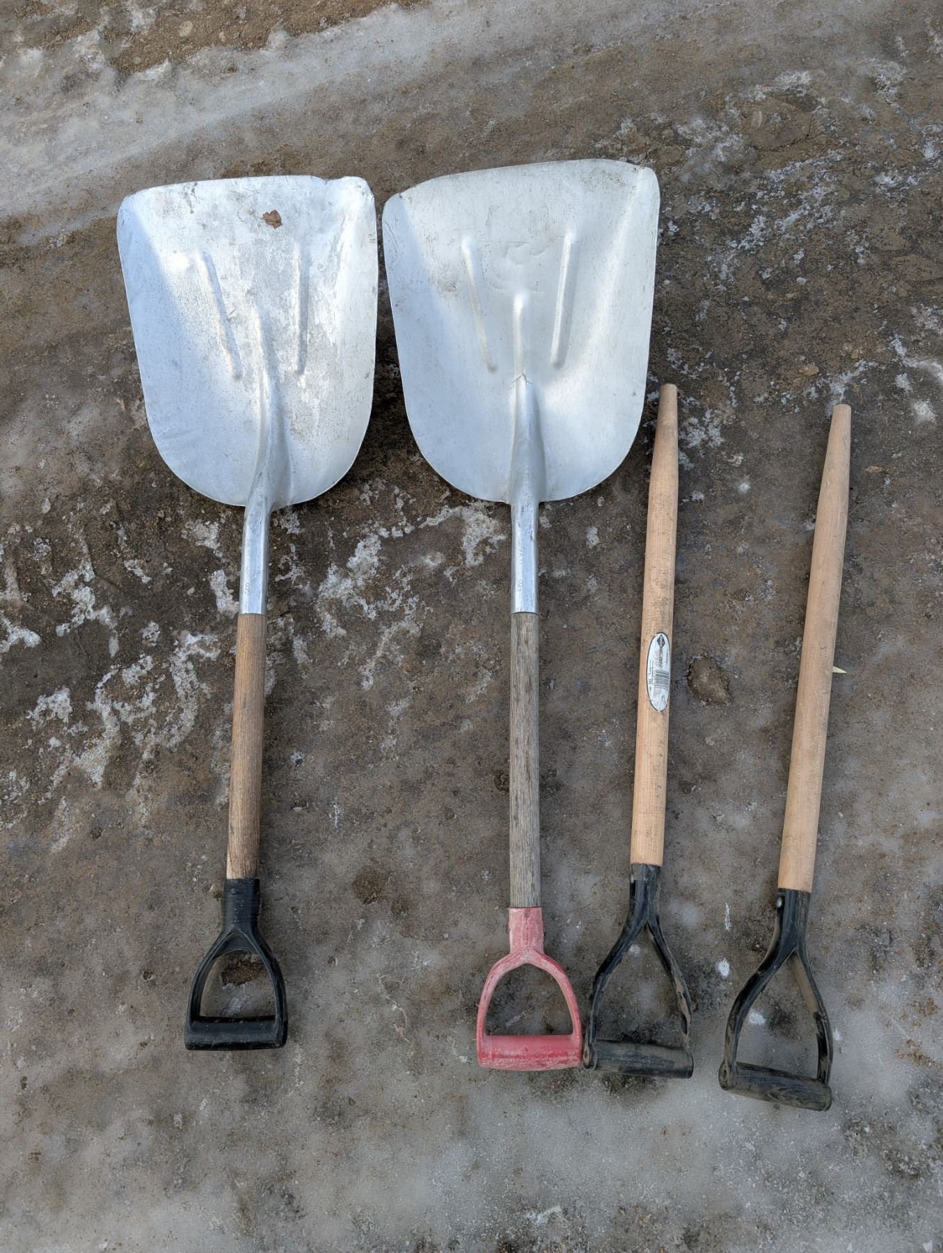 Lot of Snow Shovels w/ (2) Extra Shovel Handles