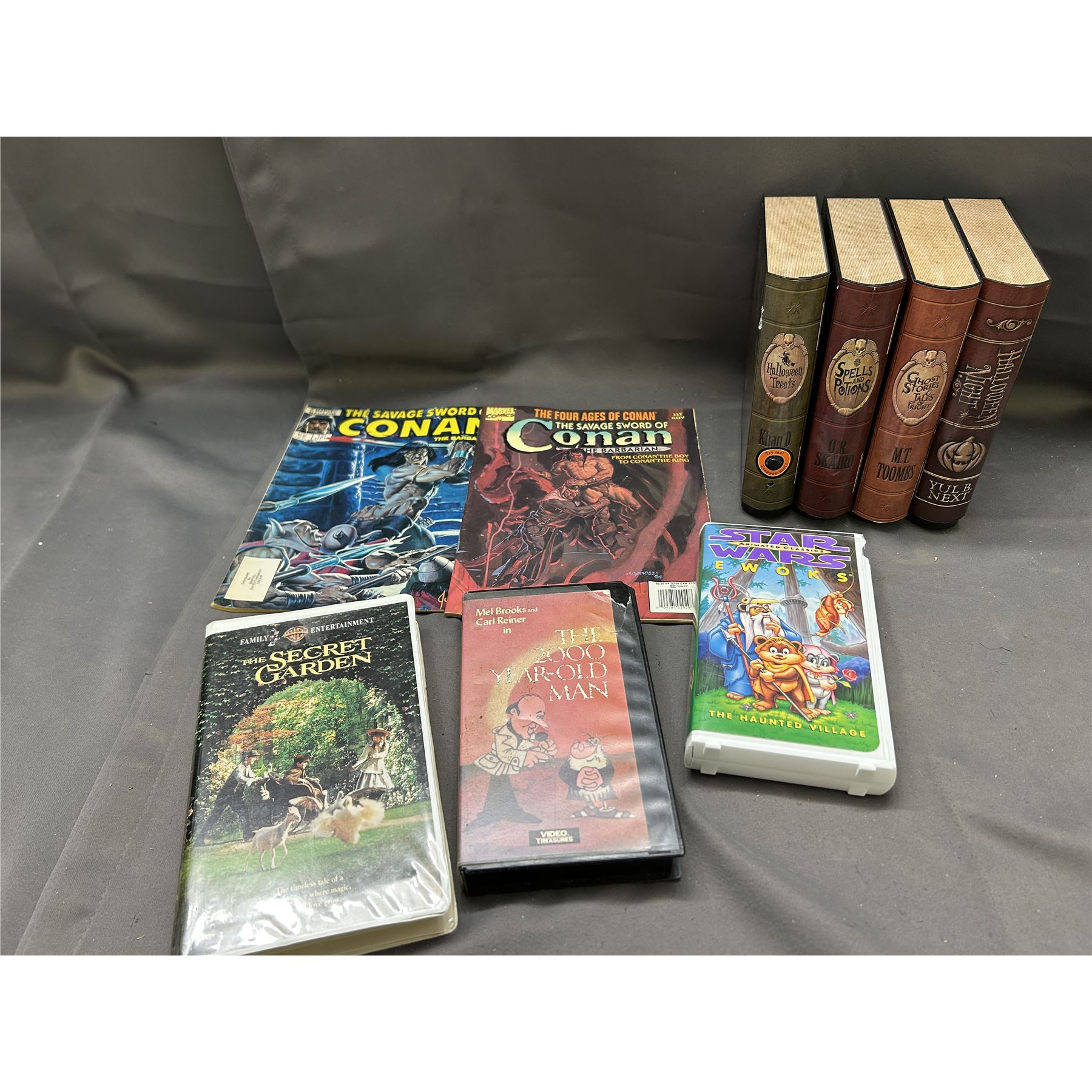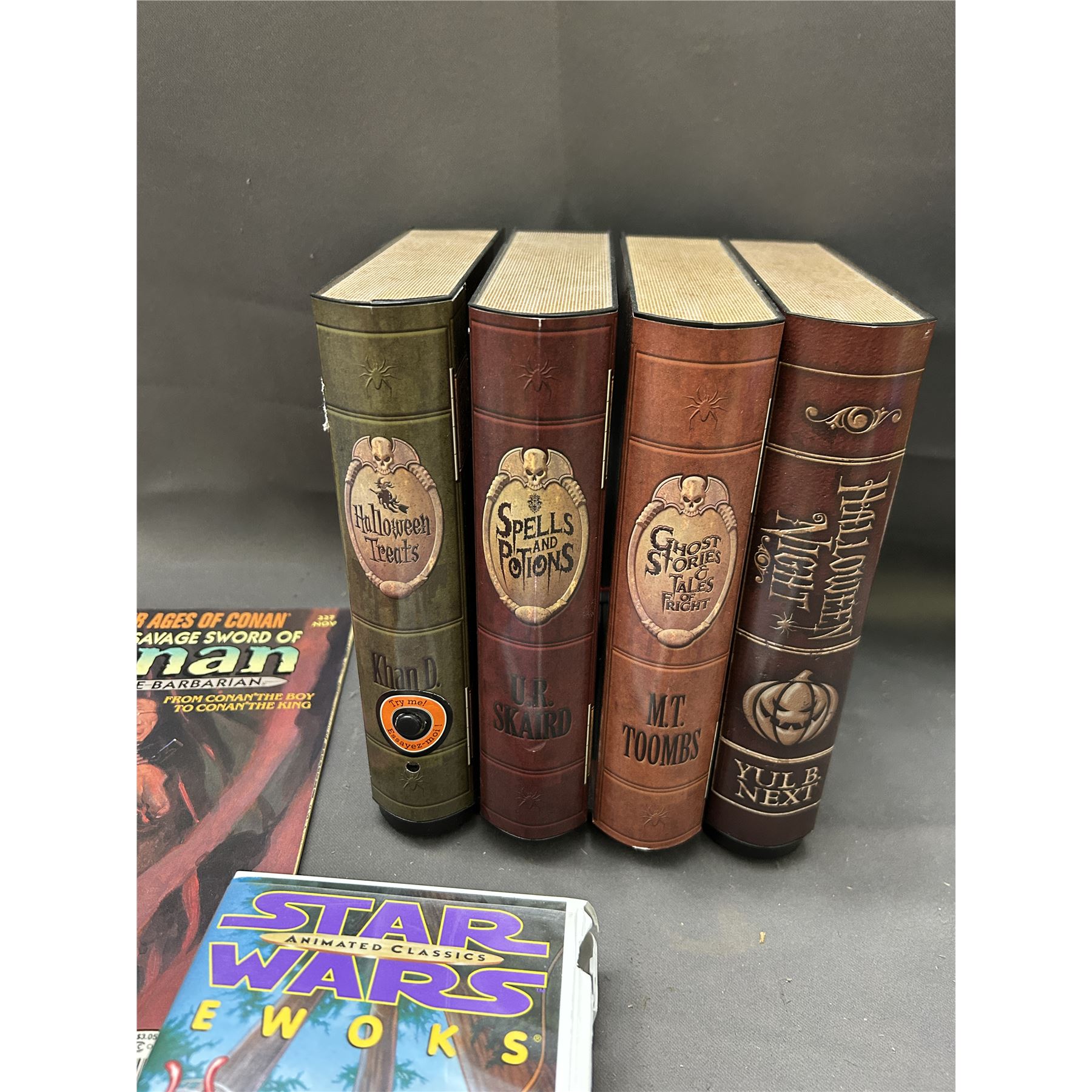 Lot of Spooky Books Halloween Decoration, Savage Sword of Conan Comics, VHS Tapes Star Wars Ewoks