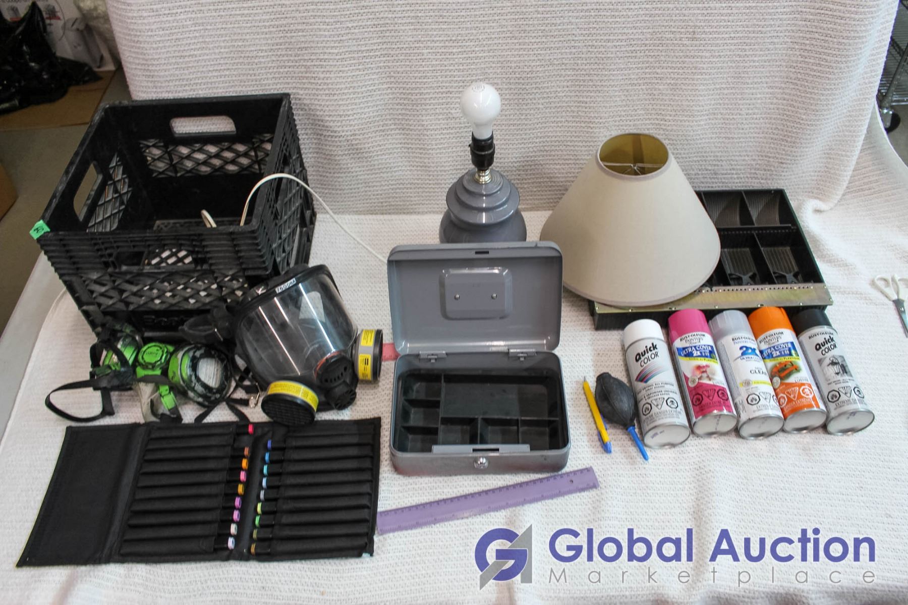 Cash Box, Spray Paint, Lamp, Gas Mask Etc