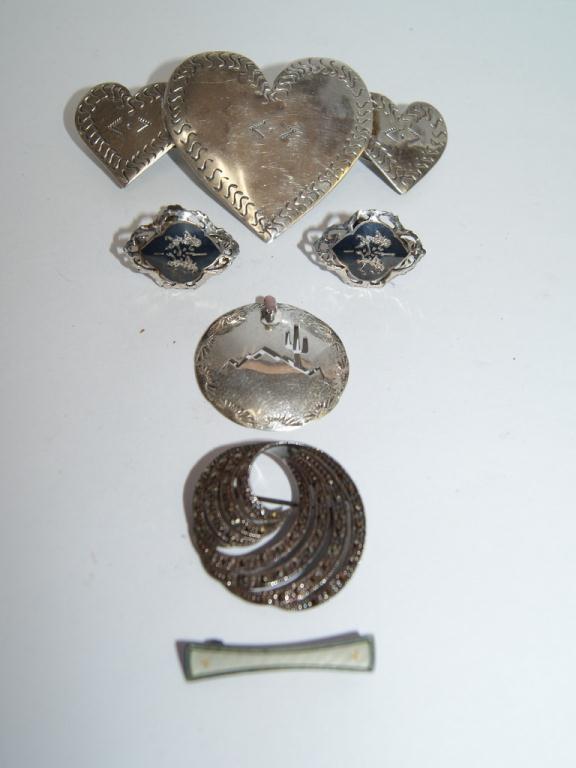 Lot of Sterling Silver, Pin, Earrings Pendant Charm and Barrette