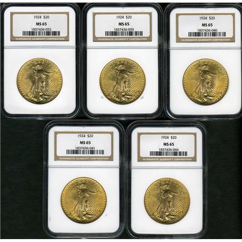 Includes: Ten 1924 NGC MS65. A consistent group of gems from NGC; plenty of eye appeal and luster. Lot of 10 coins.