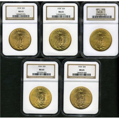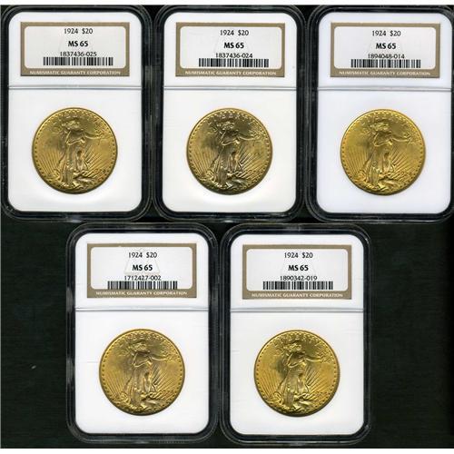 Lot includes: 10-1924 NGC MS65. Lot of 10 coins.