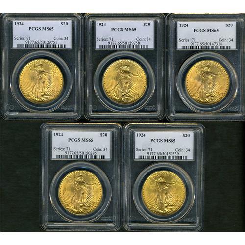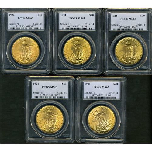 Includes: Ten 1924 PCGS MS65. Gorgeous group, with a few with the appearance of MS66. Lot of 10 coins.