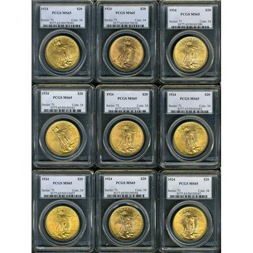Includes: Ten 1924 PCGS MS65. Consistent color and great eye appeal. Lot of 10 coins.