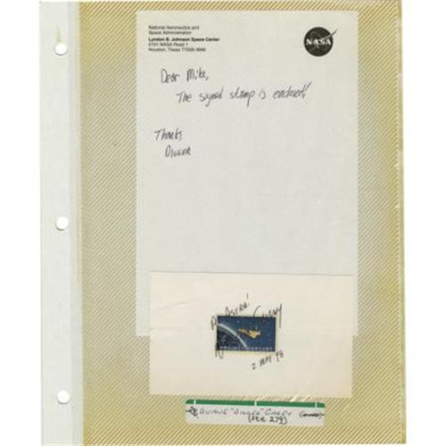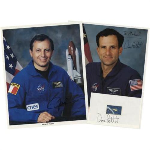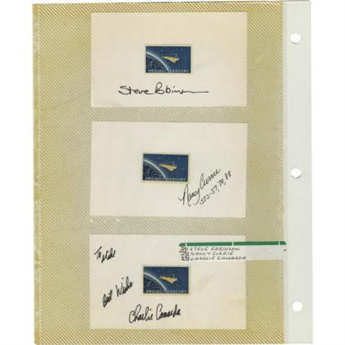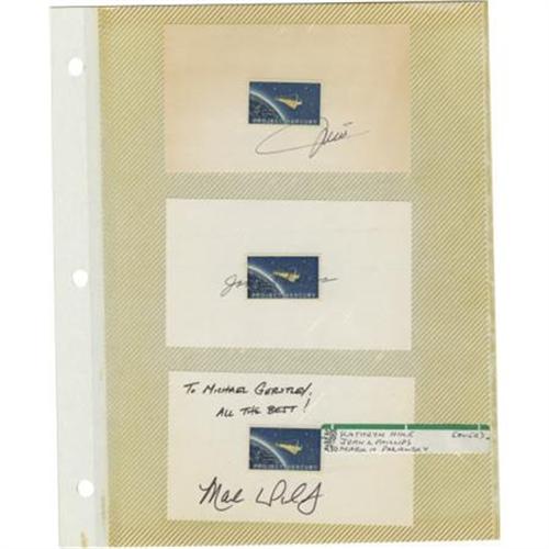 <B>Lot of Ten Astronaut Signatures,</B></I> including: Kathryn Hike, John Phillips, Mark Polansky, Steve Robinson, Nancy Currie, Charlie Camarda, Duane Carey, Don Pettit, and Michel Tognini. Each signature is on or near a space related stamp mounted on a 5" x 3" card. Pettit and Tognini also signed official NASA photographs. All cards and photos are in acetate album pages. All are very fine. <B></B></I><BR><BR><b>Shipping:</b> Flat Material, Small (<a target="_blank" href="http://www.heritageauctions.com/common/shipping.php">view shipping information</a>)