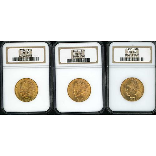 An attractive trio of nearly gem 1932 issues.