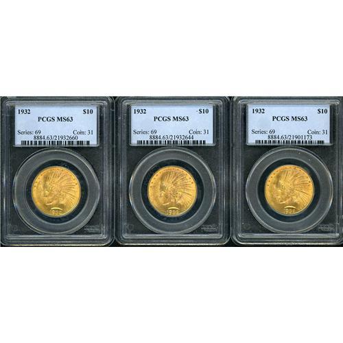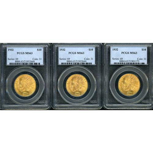 Lot includes: 3-1932 PCGS MS63. Lot of 3 coins.