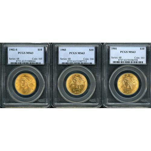 Includes: 1901 PCGS MS63, 1902-S PCGS MS63, 1903 PCGS MS63. Lot of 3 coins.