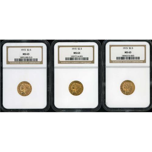 Includes: Three 1915 NGC MS63. Lot of 3 coins.
