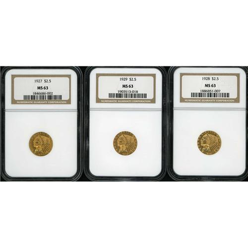 Includes: 1927 NGC MS63, 1928 NGC MS63, 1929 NGC MS63. Lot of 3 coins