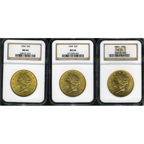 Includes: Three 1904 NGC MS64. A very PQ group, mark-free and worth considering for MS65 status. Lot of 3 coins.
