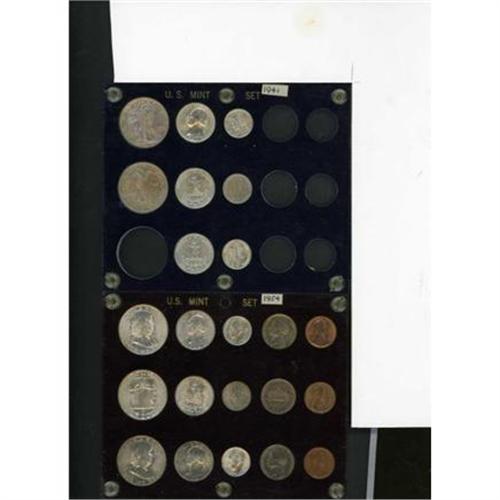 Includes: 1941 AU/UNC sets (missing P-mint Nickel and Cent, D-mint Nickel and Cent, S-Mint Half, Nickel, and Cent); 1953 AU/UNC sets (Franklin Half, Washington Quarter, Roosevelt Dime, Jefferson Nickel, Lincoln Cent); 1954 UNC sets (Franklin Half, Washing