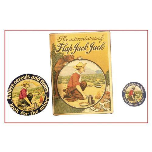 Lot of Three Albers Items including Rare paperweight mirror, Adventures of Flap Jack Booklet and paper decal. All in excellent condition, various sizes.