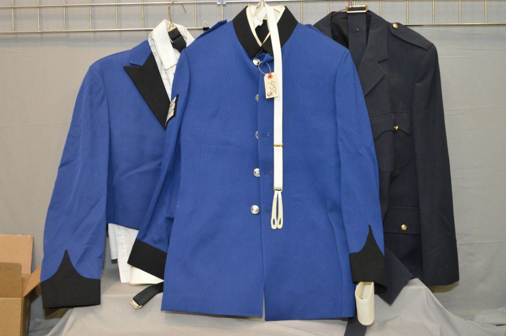 Lot of Three Blue Dress Jackets w/ pants [ Police Force on buttons c/w 2 shirts ]