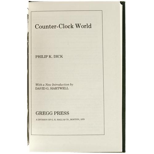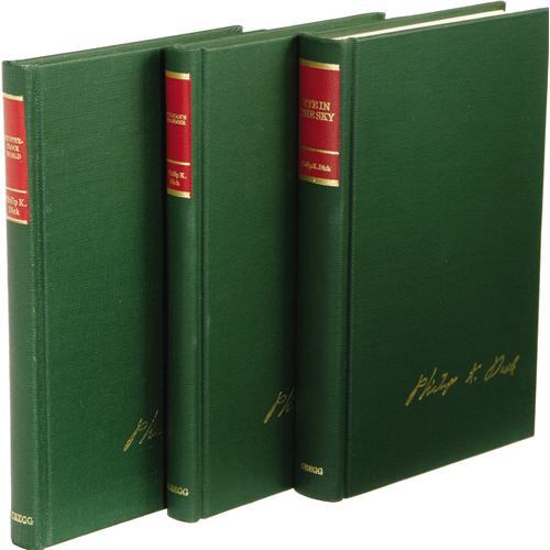 <B>Three Books by Philip K. Dick From the Gregg Press Science Fiction Series,</B></I> including:<BR><B><I>Eye In the Sky.</B></I></B></I> (Boston: Gregg Press, 1979), first hardcover edition, 255 pages, institutional binding, green boards with gilt titles, 8vo (5.5" x 8.25"), fine, no jacket as issued.<BR><B><I>Vulcan's Hammer.</B></I></B></I> (Boston: Gregg Press, 1979), first hardcover edition, 139 pages, institutional binding, green boards with gilt titles, 8vo (5.5" x 8.25"), fine, no jacket as issued.<BR><B><I>Counter-Clock World.</B></I></B></I> (Boston: Gregg Press, 1979), first hardcover edition, 160 pages, institutional binding, green boards with gilt titles, 8vo (5.5" x 8.25"), fine, no jacket as issued. <I>From the Ventura Collection.</B></I><BR><BR><b>Shipping:</b> Books & Catalogs (<a target="_blank" href="http://www.heritageauctions.com/common/shipping.php">view shipping information</a>)