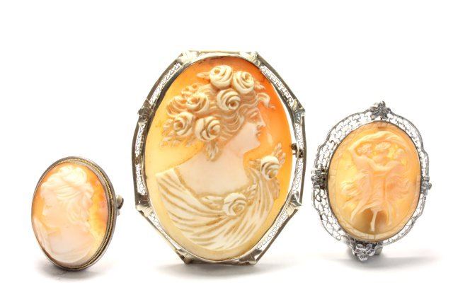 1 18k frame, 1 14k frame & 1 800 silver cameo frame. 1 depicts 3 graces. (4098)