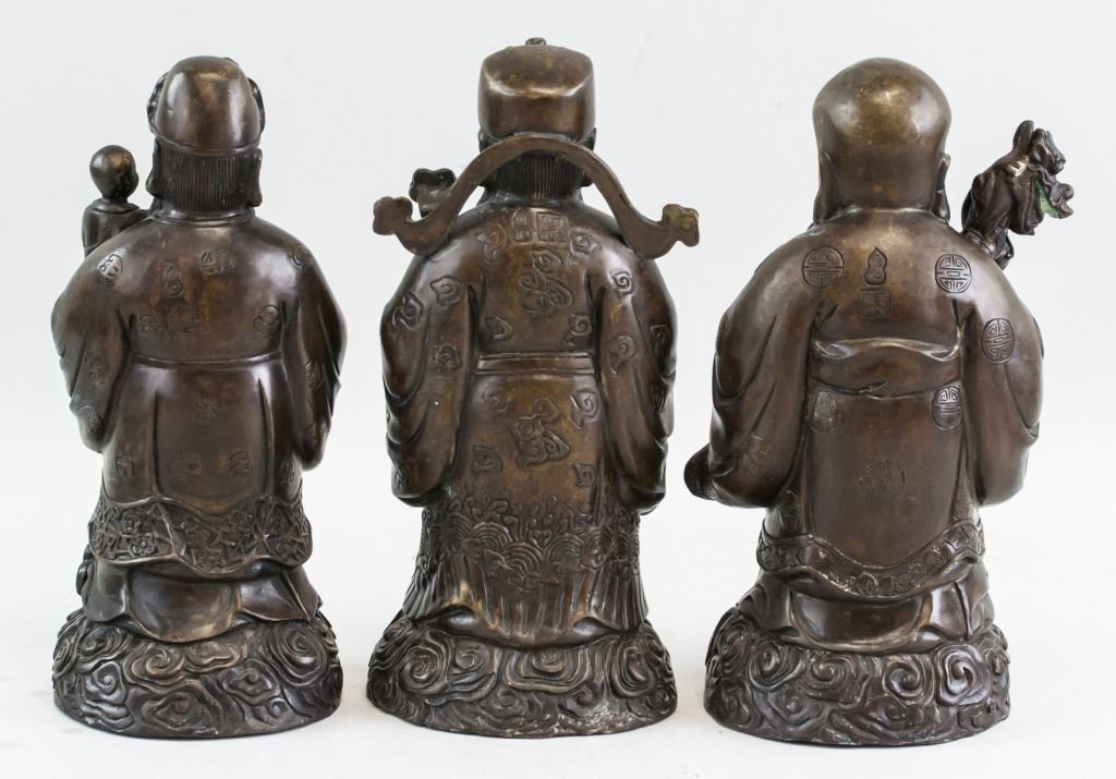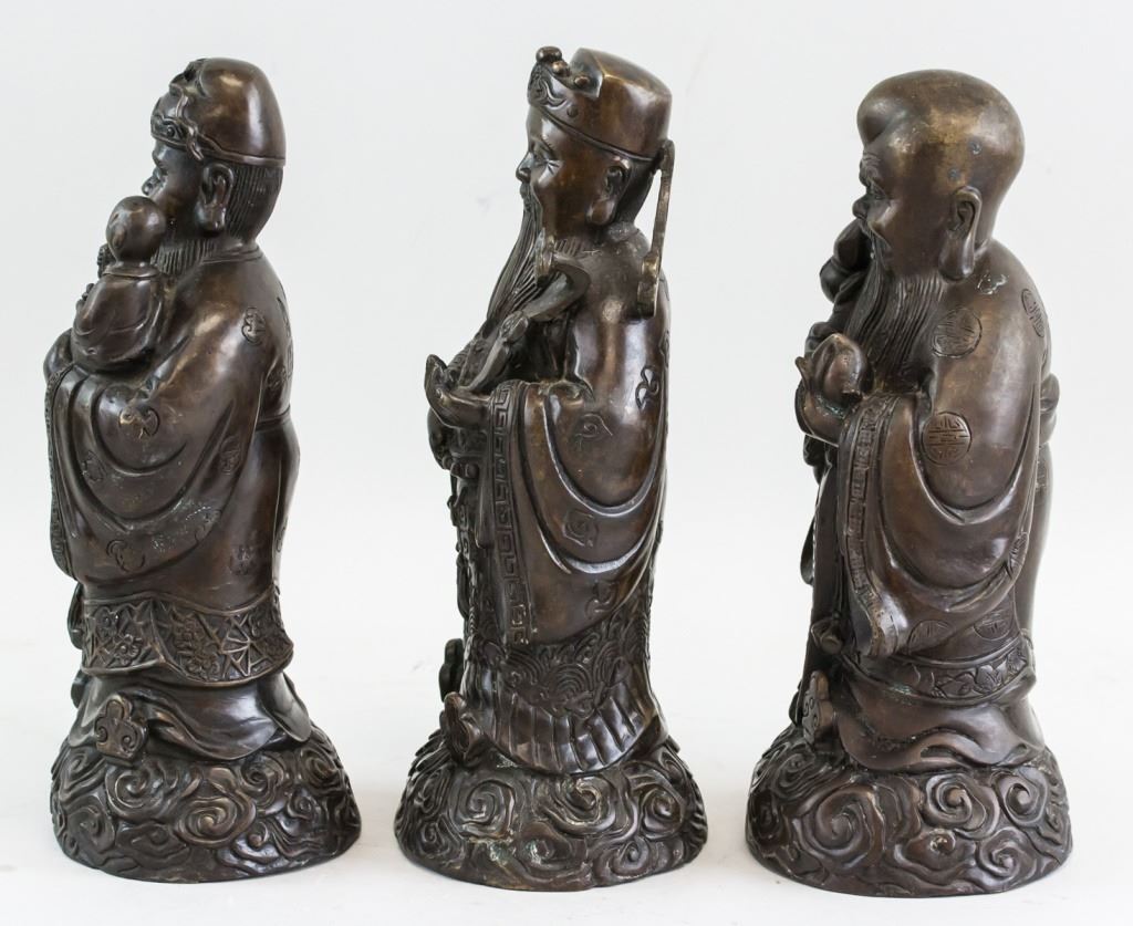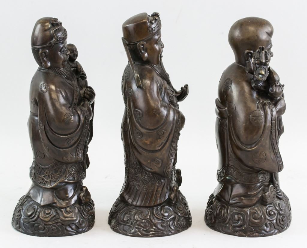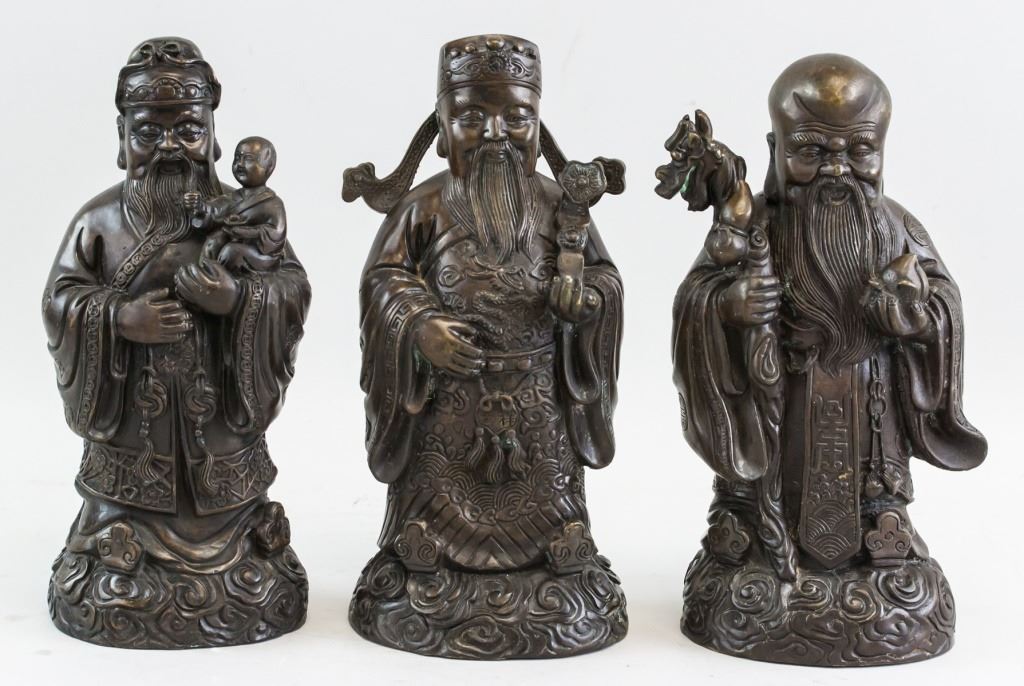 Three Chinese ceramic statues. Of Fu (Happiness) Lu (Wealth) and Shou (Longevity). 26 x 10 cm, 2kg. 26 x 11 cm, 2.2 kg. 27 x 13 cm, 2.4 kg.