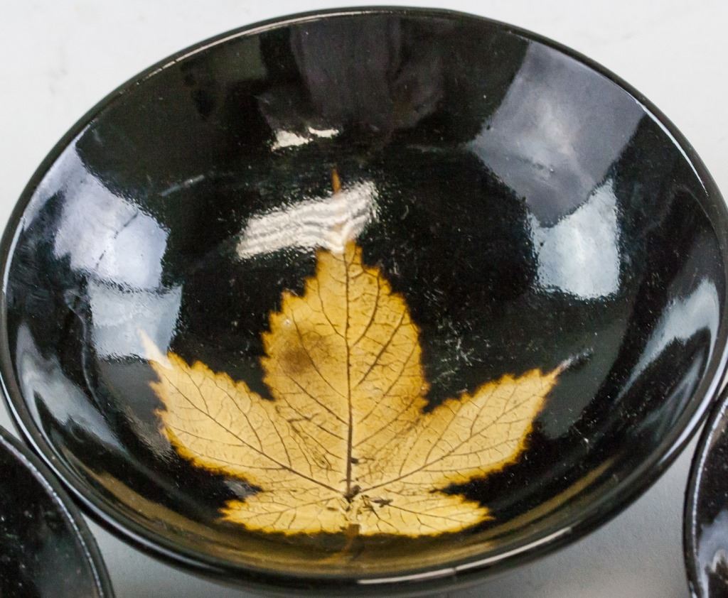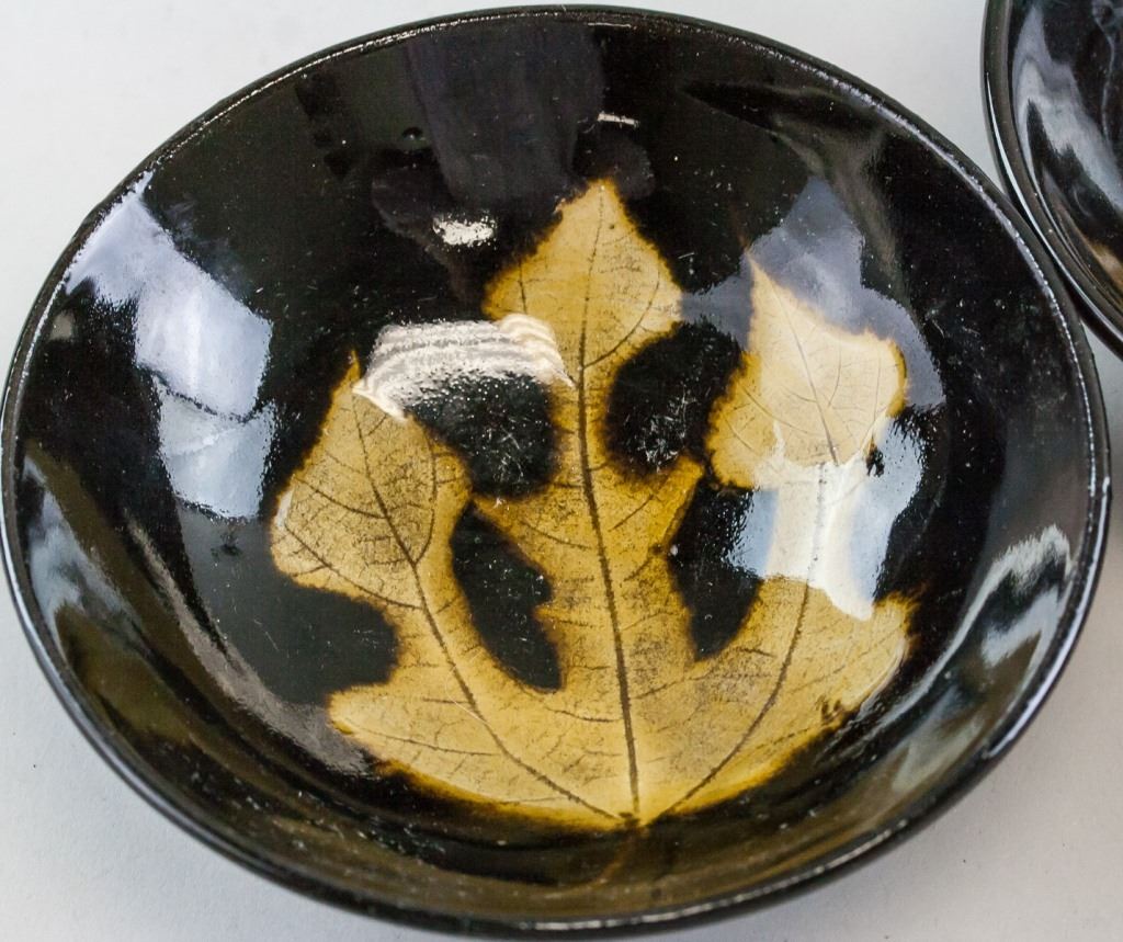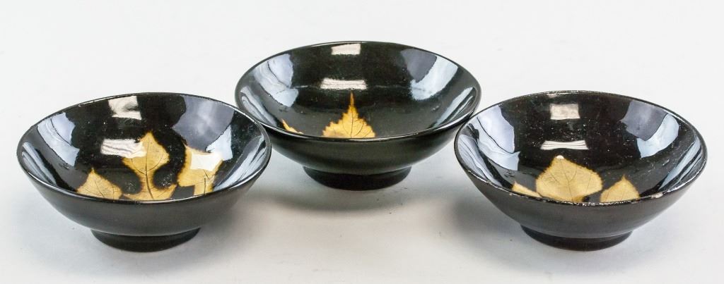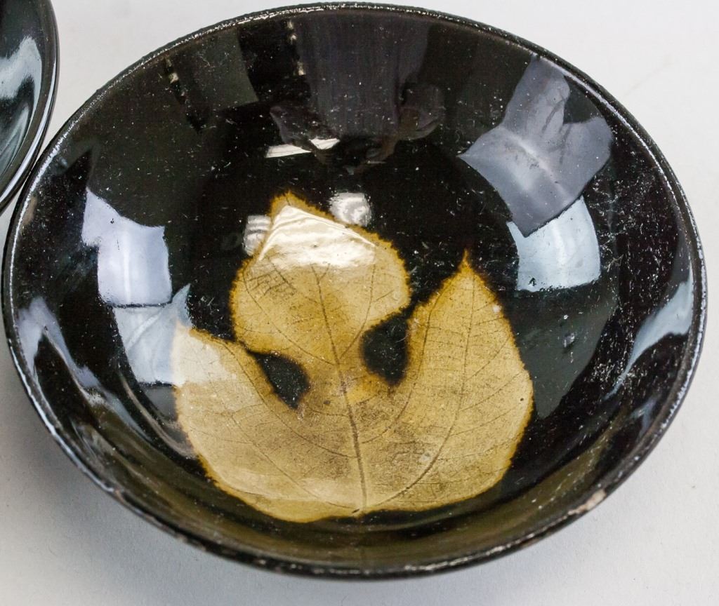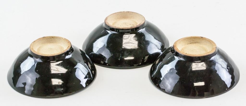 Lot of three (3) Chinese Jin style porcelain bowl. Of round edge, tapering to bottom. Supported on short foot rim. Painted with leaf inside. 4 x 11 cm, 514 grams (total)
