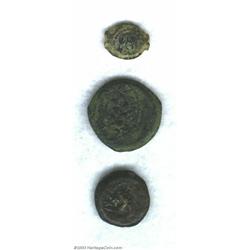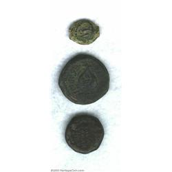 <TR><TD width="100%"><TABLE cellSpacing=1 cellPadding=3 width="100%" border=0><TBODY><TR><TD width="100%" bgColor=#79735c><FONT face=arial color=#ffffff size=3><B>Description</B> </FONT></TD></TR><TR><TD width="100%" bgColor=#ffffff><FONT face=arial size=2><B>Lot of Three Denominations of Mattathias Antigonus.</B></I> Nice bronzes of the three major denominations of Mattathias Antigonus (40-37 BC), the last of the Hasmonean (Maccabean) kings of ancient Judea. Included are the eight-prutah coin (Hendin-481), the four-prutah coin (Hendin-482), and the single prutah coin (Hendin-483). Coins grade from VG to F. (3 coins) </FONT></TD></TR></TBODY></TABLE></TD></TR></TBODY></TABLE><BR><A name=PricesRealized></A><TABLE cellSpacing=0 cellPadding=0 width="100%" bgColor=#000000 border=0><TBODY><TR><TD width="100%"><TABLE cellSpacing=1 cellPadding=3 width="100%" border=0><TBODY><TR><TD width="100%" bgColor=#79735c><A name=PR><FONT face=arial color=#ffffff size=3><B>Previous Prices from Heritage Auctions</B> </FONT></A></TD></TR><TR><TD bgColor=#f6f6ed>No Prior Data Recorded </TD></TR><TR><TD bgColor=#ffffff><FONT face=arial size=1 ?>PLEASE NOTE: All prices realized reflect the final hammer price PLUS the buyer's premium in auctions that charge a buyer's premium. Each item has a notation at the top of the listing indicating whether that lot included a buyer's premium. Example: A item that sells with a final hammer price of $100 and a 20% buyer's premium will display with a price realized of $120. All information listed is intended to be as accurate as possible, but errors are possible. Please use this guide carefully and inform us of any inaccuracies. </FONT></TD></TR></TBODY></TABLE></TD></TR></TBODY></TABLE><BR><TABLE cellSpacing=0 cellPadding=0 width="100%" bgColor=#000000 border=0><TBODY><TR><TD width="100%"><TABLE cellSpacing=1 cellPadding=3 width="100%" border=0><TBODY><TR><TD width="100%" bgColor=#79735c colSpan=6><FONT face=arial color=#ffffff size=3><B>Price Guide*</B> </FONT></TD></TR><TR bgColor=#f6f6ed><TD align=middle><B>Grade</B> </TD><TD align=middle><B>Coin World<BR>(Trends)</B> </TD><TD align=middle><B>Numismedia<BR>Retail</B> </TD><TD align=middle><B>Numismedia<BR>Wholesale</B> </TD><TD align=middle><B>Coin<BR>Universe</B> </TD><TD align=middle><B>Heritage<BR>Value Index</B> </TD></TR><TR><TD colSpan=6>No Pricing Data Available</TD></TR><TR bgColor=#ffffff><TD colSpan=6><FONT size=1>*All information listed is intended to be as accurate as possible, but errors are possible. No item may be returned or refused based on this information which is provided as a service to our customers. You should contact each pricing source directly to determine the accuracy of this information. </FONT></TD></TR></TBODY></TABLE></TD></TR></TBODY></TABLE><BR><TABLE cellSpacing=0 cellPadding=0 width="100%" bgColor=#000000 border=0><TBODY><TR><TD width="100%"><TABLE cellSpacing=1 cellPadding=3 width="100%" border=0><TBODY><TR><TD width="100%" bgColor=#79735c><FONT face=arial color=#ffffff size=3><B>Population Guide</B> </FONT></TD></TR><TR bgColor=#ffffff><TD align=middle></TD></TR></TBODY></TABLE></TD></TR></TBODY></TABLE><BR><TABLE cellSpacing=0 cellPadding=0 width="100%" bgColor=#000000 border=0><TBODY><TR> 3 coins Important notice: We expect to be auctioning lots at the rate of 200-250 per hour. On occasion eBay live bid software cannot keep up with the pace of the auctions where 4-5 lots per minute can hammer down, so we recommend that you place a realistic absentee bid now as insurance to avoid disappointment. Also please note that all Heritage/CAA lots purchased through eBay Live carry a 20% Buyer's Premium. Please make sure you read the Terms and Conditions.