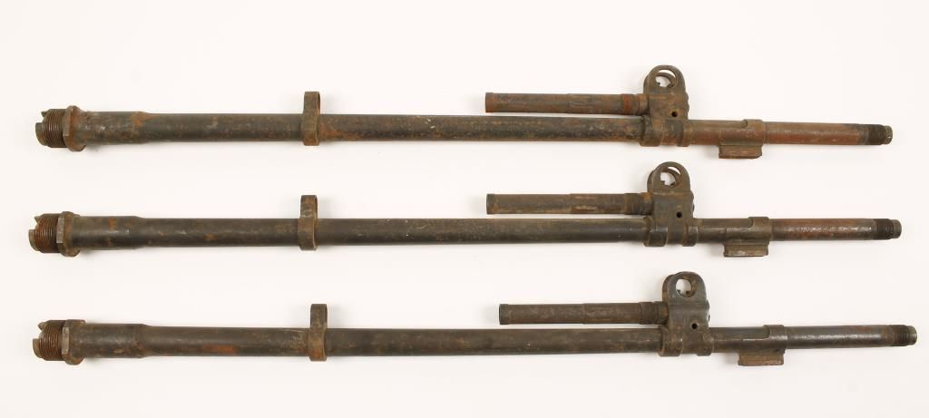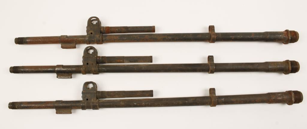 23-1/16" long. Threaded muzzles. Barrel tenon threads look good on two of them. Condition is fair to poor. Not stored well or cared for. Rusty and dirty. May clean to better condition.