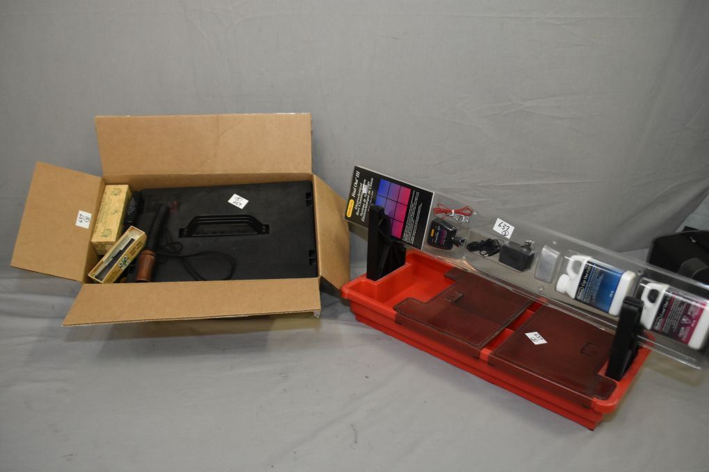 Lot of Three Items : Box : Sierra Land Shooting Box w/ some reloaders etc. - 6 Various Game Calls - Mag Reloader - Case Guard Box w/gun rest - New in Pkg Outer's Electronic Bore Cleaning System