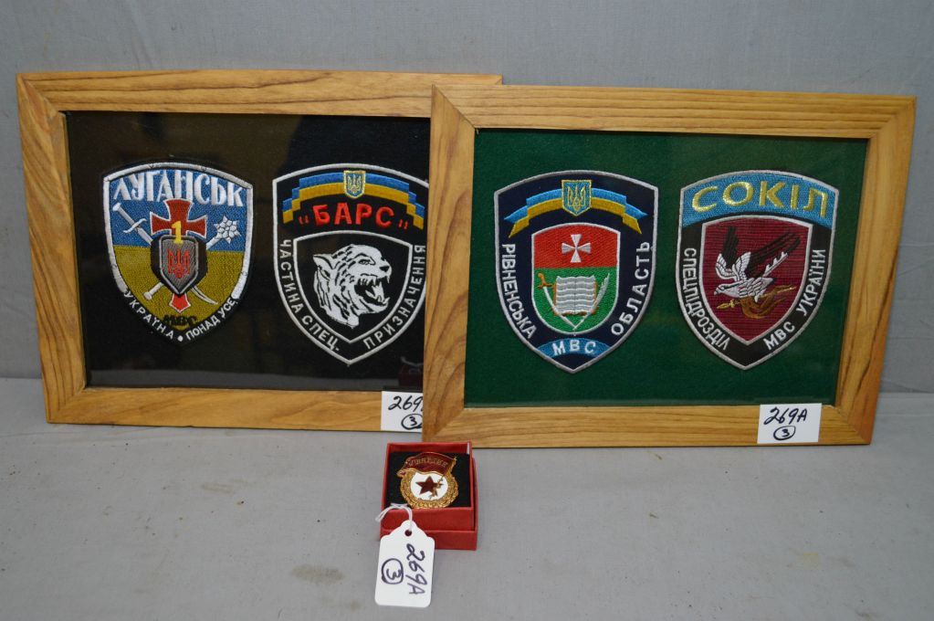 Lot of Three Items : Two Framed Displays of European Military Badges - Plus Soviet Guard Gvardia Badge ( USSR ) Since WWII