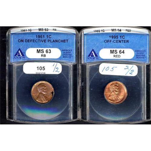 <b>Lot of Three Mint Error Pennies.</b> Includes: 1907 Indian Head cent mint error raw, a 1961 Lincoln cent mint error raw, and a 1995 Lincoln cent mint error raw. Lot of 3 coins.