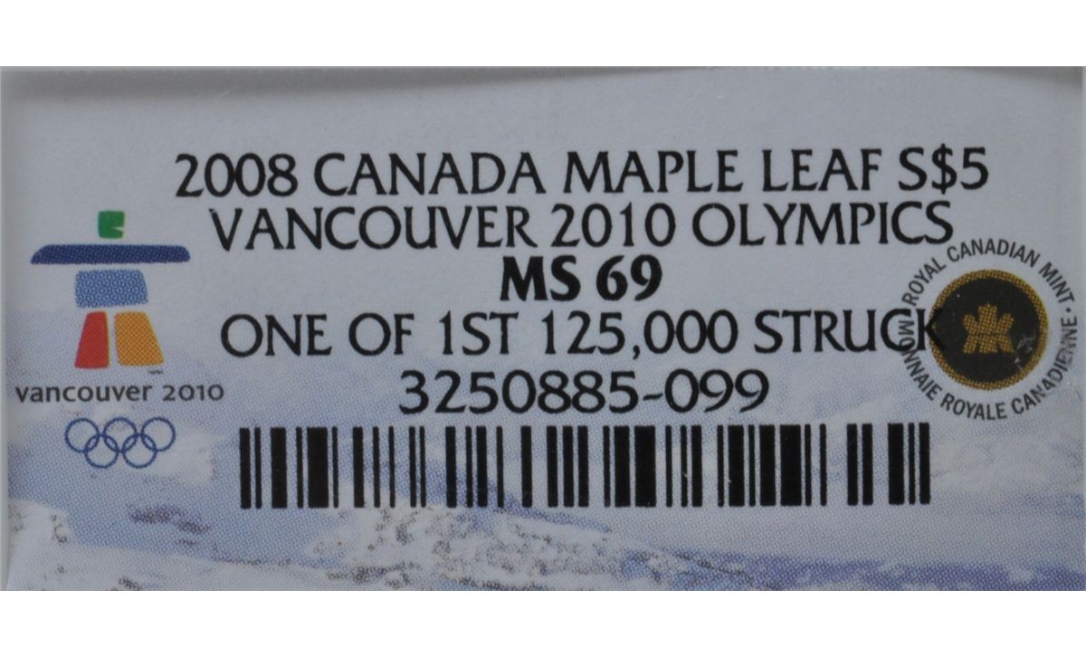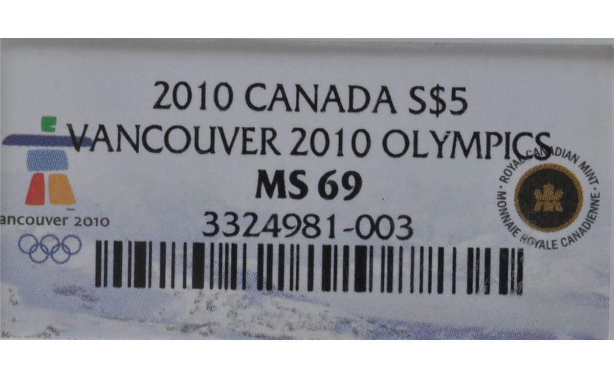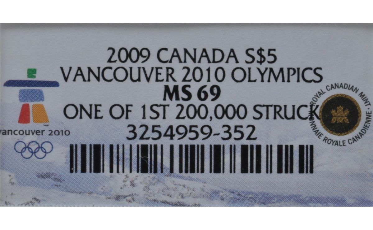 Lot of Three NGC Graded Vancouver Olympics $5 SML's - 2008 early strike MS69, 2009 early strike MS69, 2010 Olympics MS69. All fine silver. 3 Pcs.